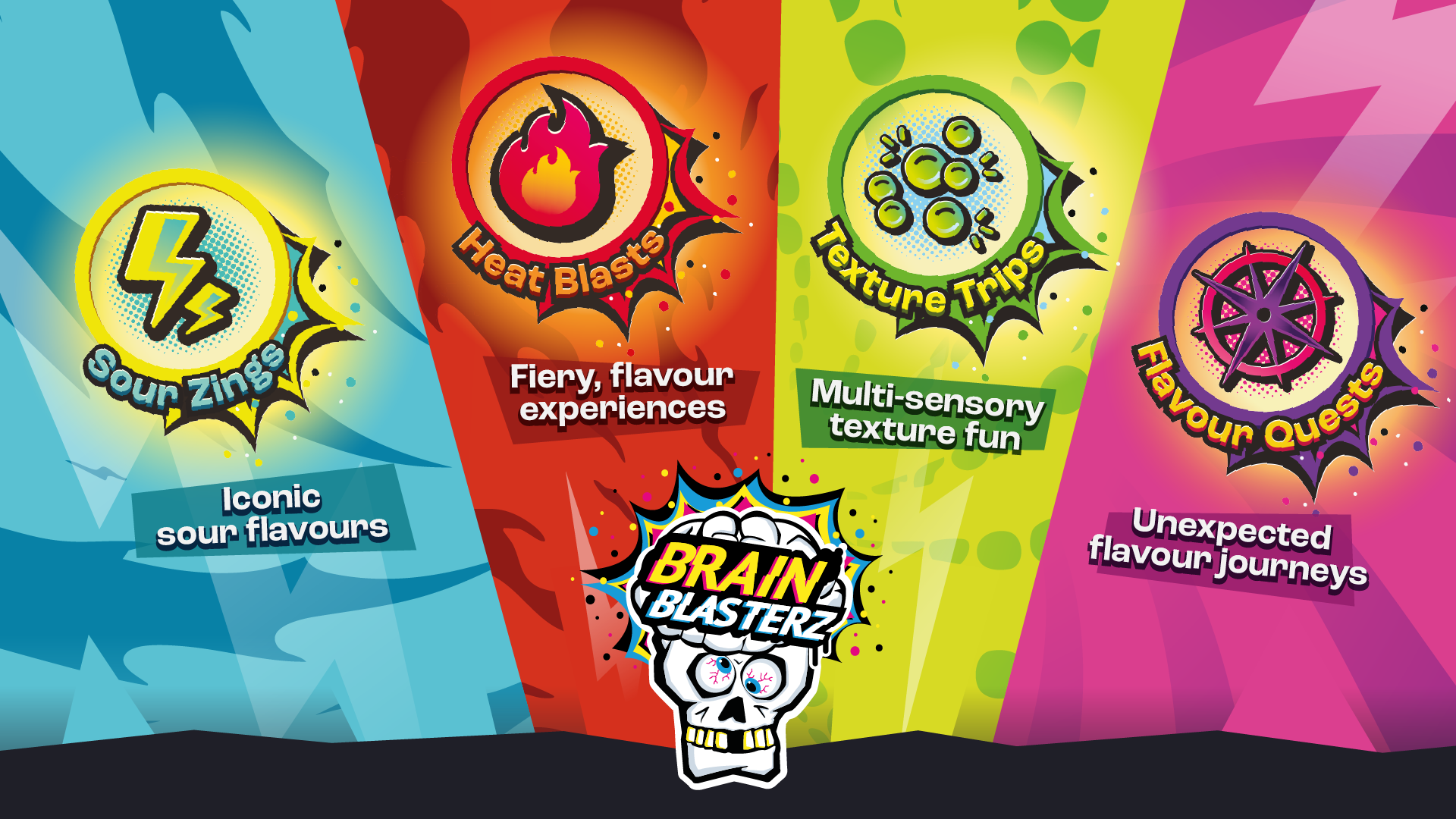 Today, Brain Blasterz lives across four Adventure Zones: Sour, Heat, Texture and Flavour, creating a world of candy designed to surprise, challenge and delight. Always intense. Never boring.